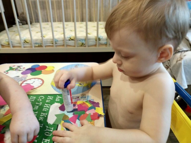 Спасибо)) да мы не за раз поделку делаем, тоже не сидим постоянно, приклеили, к примеру, домик и елку — побегали, потом сели — помазали клеем, посыпали манкой — побежали?