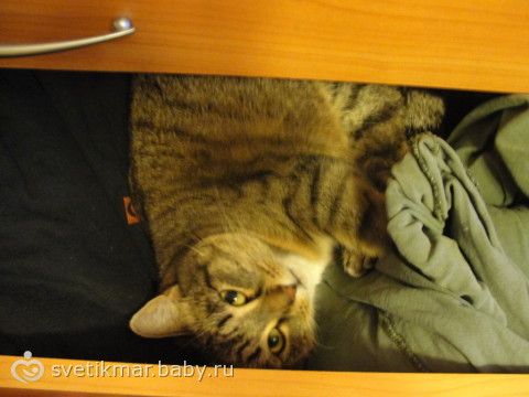 Вечером ВАся спряталась. Воспользовалась тем, что хозяин комод не закрыл...