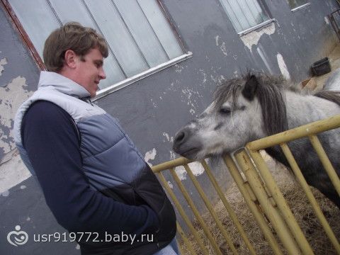 Пони, которого я погладила по носу и который меня чуть не цапнул. Живет вместе с коровами.