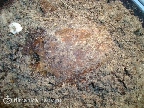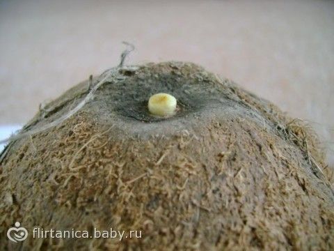 2. Через месяц замачиваний закапываем кокос, как показано на картинке 2. Почва так же должна быть всегда теплая.