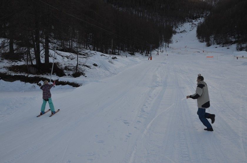 В прошлом году Руслан научил Орели хорошо кататься и в этом году она уже самостоятельно ездила.Мы билет взяли только ей и она сама поднималась на подъёмниках и каталась с гор.