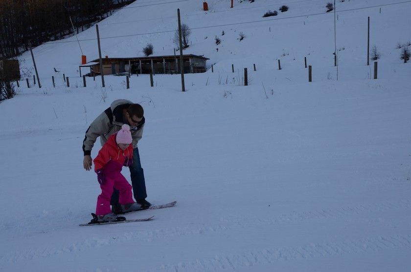 Как Жозефин перестала бояться, так сама стала с маленькой горочки кататься.Руслан освободился, чтобы Орели обшпуливать снежками.И в 40 лет мужчины-дети.