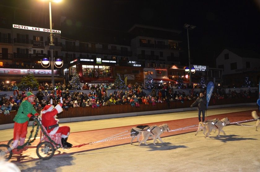 Перед отъездом из горной деревушки случайно попали на приезд Пер Ноэля.Он на собаках въезжал.