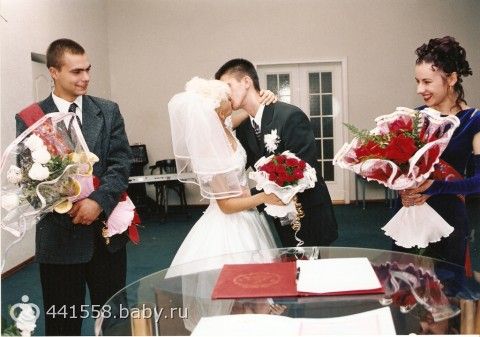 В ЗАГСЕ — ну такие зеленые!)) Прям школьники) У мужа еще прическа коротенькая была)
