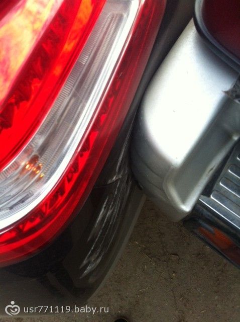 На чужой пару царапин (она и так вся потертая была), а на моей крыло и бампер сильно сильно помялись:((( целый день хожу расстроенная