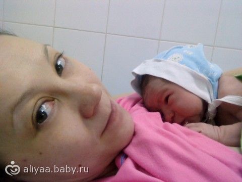 Родила я раньше срока почти на две недели. Это наша первая совместная фотка, минут через 20 после родов