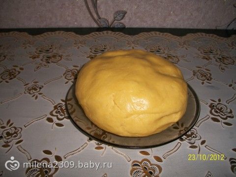 замешиваем тесто: растираем маргарин с сахаром (150 гр.) добавляем 4 яйца, соду, муку, Все хорошо вымесить, убрать на пол часа в холод.