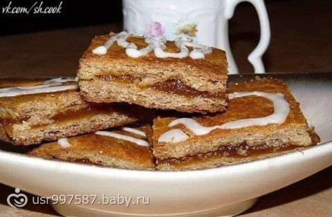 5. Один корж смазываем начинкой (главное, чтобы начинка была погуще, тогда она будет более заметна в готовом прянике).