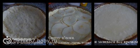 На тесто равномерно выложить все натертые яблоки и залить их подготовленным кремом.