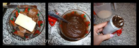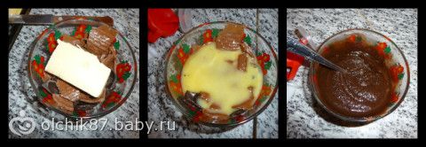 крошим, добавляем масло, растапливаем в микроволновке
