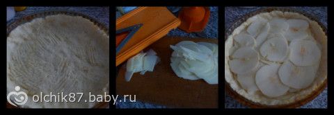 надо было 1кг. яблок (~4шт. крупного размера), но у меня было только 2, очистить от шкурки и нарезать очень тонко ножом для картофеля. я на овощерезке порезала. В форму d 26см. руками выложить тесто, делая бортики.