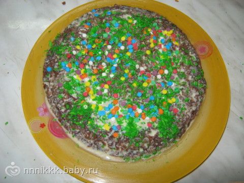 Теперь превращаем наш бисквит в замечательный тортик. Украшаем тем, что есть под рукой))