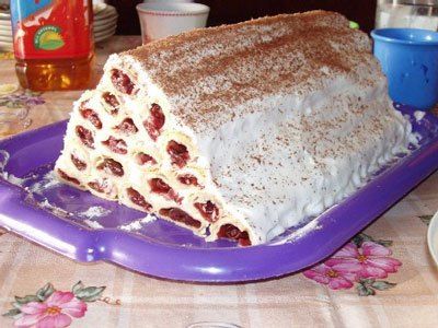 ТЕСТО 250г сливочного масла или маргарина, 1 стакан сахара, 200г сметаны, 3,5 стакана муки,1/3 ч ложки соли, 1/2 ч ложки соды НАЧИНКА 500~700-граммовая банка густого вишневого варенья КРЕМ или вишню в собственном соку