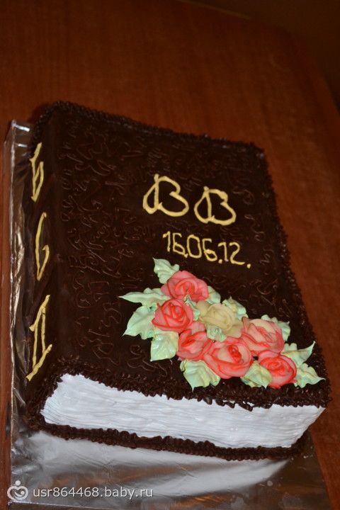Внутри Наполеон с заварным кремом, весом книга вышла на 3,5 кг, украшен шоколадным кремом.
