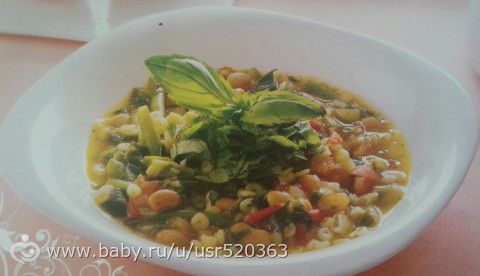 От себя хочу добавить, что фасоль там хотелось бы поменьше размером. Муж еще сказал, что можно и нут было бы вместо фасоли добавить. Так бы убила 2 зайцев одним выстрелом. Не подумала вовремя ))))