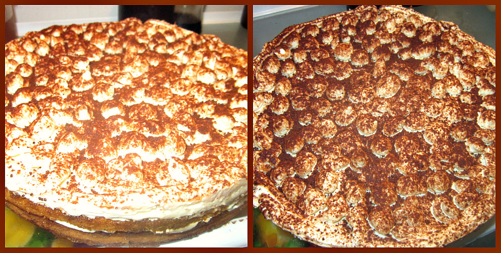 коржи «русский бисквит» там их три штучки я все использую.беру как с какао так и простые.маскарпоне делаю сама поэтому вкусно и так и так.с моим сыром чуть покислее, но мои не любят приторные торты