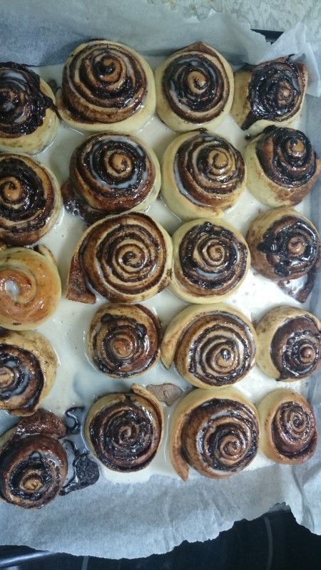 Недавно подруга сказала, что синнабоны в известном кафе не очень вкусные, я их не ела никогда, но как фанат выпечки решила приготовить. Получилось что-то волшебное… Мягкие нежные булочки с пряной начинкой. Забыла сначала яйца в тесто вмешать, видимо от одиночества расслабилась?. Тесто без яиц замешала, потом только добавила, все равно все поднялось хорошо. Всем рекомендую, кто любит корицу, хотя с начинкой можно эксперементировать. С телефона рецепт почему-то не копируется… Брала я его у ЭндиШефа.)