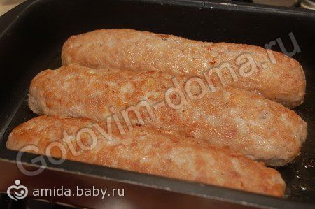 * Очень вкусные колбаски получаются также с начинкой из жареных грибов с луком.