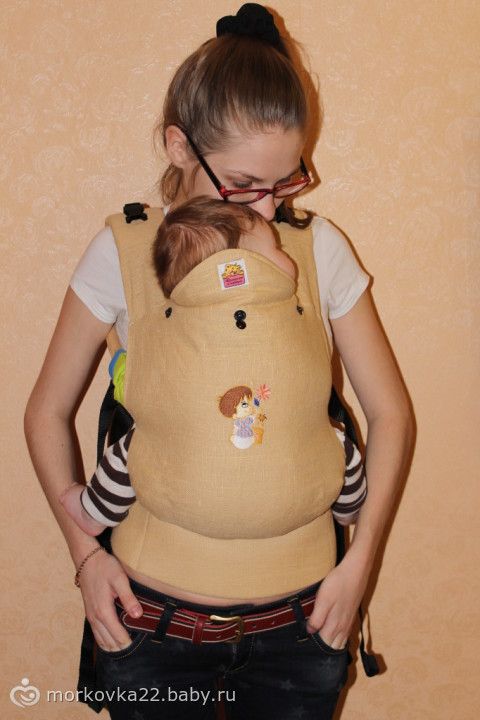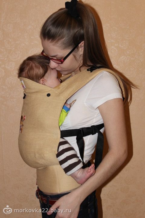 Ну а вобщем по положению ребенка по фото все нормально и спинку округлить нужно, то есть при ослабить стропы и подвернуть попку.