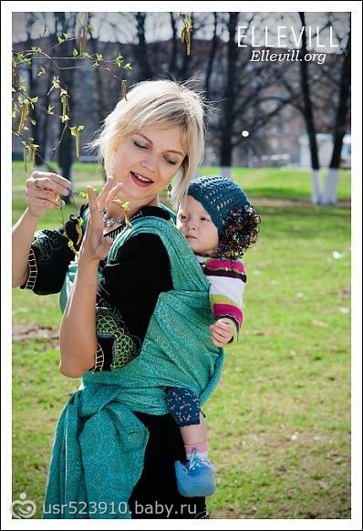 Ура! В субботу купили мы слинг в шоу-руме на Новом Арбате :) Ellevill Paisley Linen Linger ну очень красивого бирюзового цвета!!! Наполовину из льна, наполовину из бамбука. От ткани я в восторге: дома только отпарила утюгом, слинг на ощупь мягкий и тонкий, а за счет льна очень прочный и не жарко мне под солнцем было ходить.