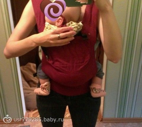 2.Малыш получается высоко сидит, макушка на одном уровне с основанием моей шеи. Когда формирую карман, то как полагается в инструкции он должен провиснуть до пупка ( в пустом виде), так и делаю.