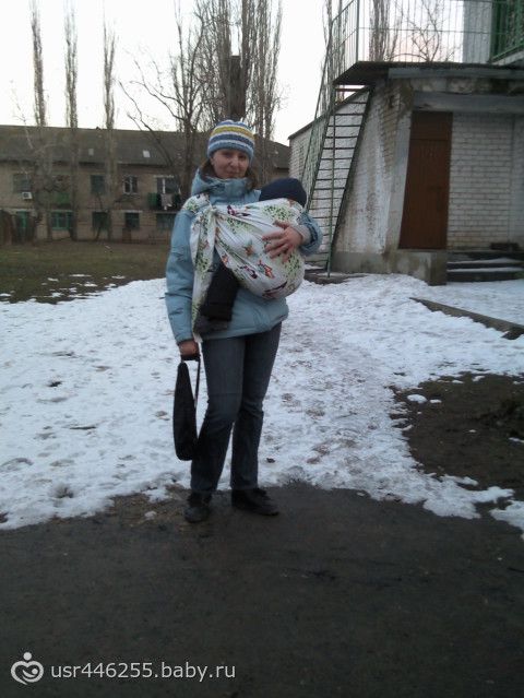 Ну и есть разные моменты. В слинг наматывать желательно в первой половине дня, когда малыш выспался, поел, пописал — в общем полностью доволен. Предварительно намотки все тренируем с куклой, чтоб с малышом было меньше учений, хотя бы знать что где подтягивать и наматывать. Можем использовать слинг как одеяло или носить его на себе, чтоб он пропитался запахом мамы и ребенок привык к этой тряпочке. Также после намотки мы руки не убираем, продолжаем обнимать малыша, в процессе привыкания убираем сначала одну руку, затем вторую. Постоянно двигаемся, разговариваем с малышом, поем ему.