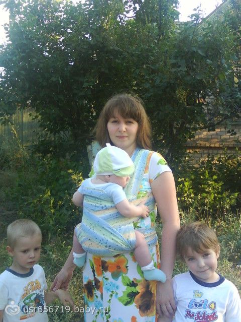 Первую доченьку носили на руках семь родных сестер моего мужа, поэтому у меня не возникало желания купить коляску или слинг. Второй сыночек был ручной, но и тогда о слинге я никак не могла узнать, так как не было у меня доступа в интернет. Носила своего малыша иногда в полотенце или простыне – дома, так что где-то в подсознании оно у нас заложено! А вот с третьим малышом, который родился весом более 4 кг. — мы уже стали более опытными родителями по отношению к грудному вскармливанию и к слингам. Большую часть информации я узнала по интернету, это была колоссальная помощь и реальная поддержка консультантов по грудному вскармливанию. Слингоношение очень тесно связано с кормлением грудью, поэтому у нас появился первый правильный слинг и я получила массу удовольствия. Буквально с разницей в несколько дней на свет появился еще один слинг и еще…. Разные, красивые, удобные: слинг с кольцами, май-слинг, слинг-шарф, слинг-рюкзак. Мы оценили все прелести этих переносок забыв напрочь про подаренную коляску и про … ни разу не ношенный, неудобный и вредный кенгуру “Baby Bjorn“… Получив опыт слингоношения, знания от коллег, пройдя обучение я сама стала консультантам по слингам. Это просто счастье, когда от работы – получаешь позитив и удовольствие. Дети – цветочки – окружают. Близняшки, двойняшки, карапузы и дюймовочки – жизнь в сказке. И эту сказку я несу людям….