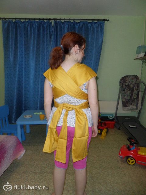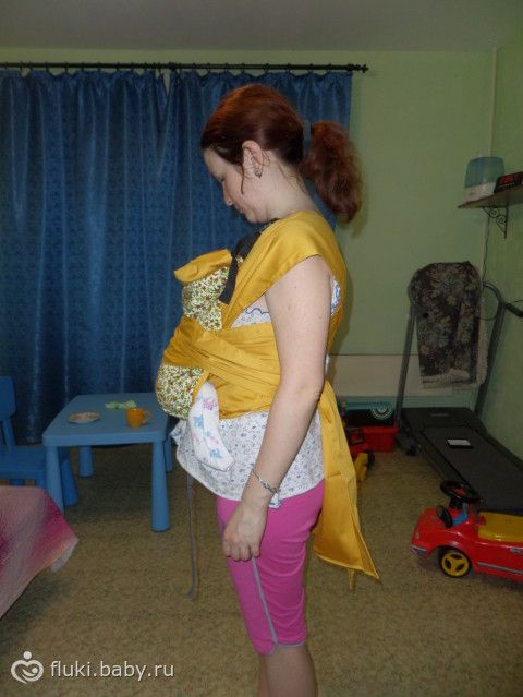 День добрый!Первый раз намотала слинг, крест под карманом, подскажите, правильно ли? Кроме того, интересует следующий вопрос: в слинге у ребенка должна быть спина колесом, но не отразится ли это на позвоночнике? Вопрос больше интересует моего папу, который категорически против ношения ребенка в слинге. Какие аргументы можно привести кроме «физиологической позы»? Заранее спасибо:)