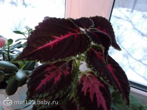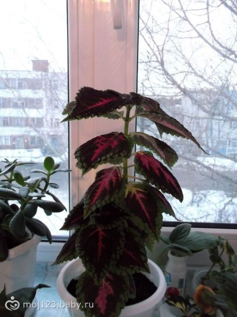 Колеус.Его уже можно прищипнуть, и через время он будет красивым кустиком.