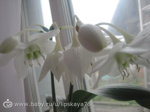 у мамы был цветок, горшок да два листочка, забрали его к себе, вылезло ещё два листика из земли, а недавно зацвел, да так красиво))))похож на нарцисс.