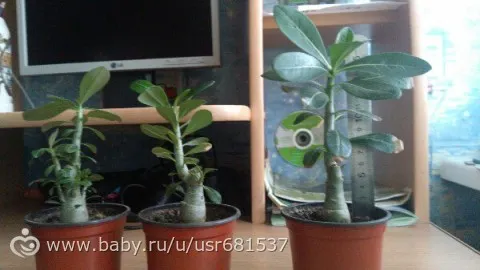 Адениумы в плошки для бонсаи сажу, им большие горшки не нужны.