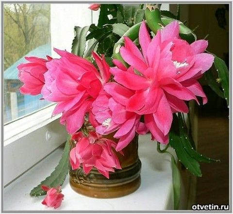 Декабрист не прихотливый и красиво цветет красненькими цветочками.