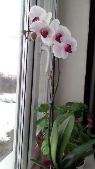 Я думаю, что из-за батареи, я обычно жду, когда полностью пожелтеет и отрезаю; главное, чтобы новые листочки тоже росли (только у меня они вылезают после того, как орхидея отцветёт).