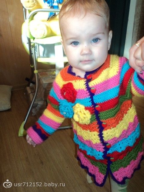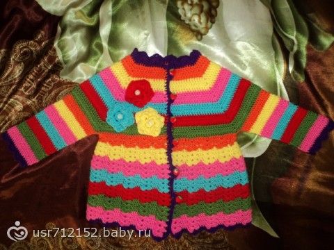 Вот такая веселенькая кофточка получилась))) правда сейчас для нас это скорей всего пальтишко, специально сделала рукава подлиннее, на вырост)))