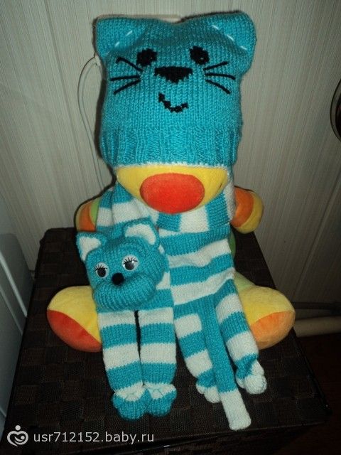 я тоже подобную котошапку сыночку ваяю, но шарф как у вас мне, наверное не осилисть — терпения не хватит! а шапка с подкладкой, если не секрет?