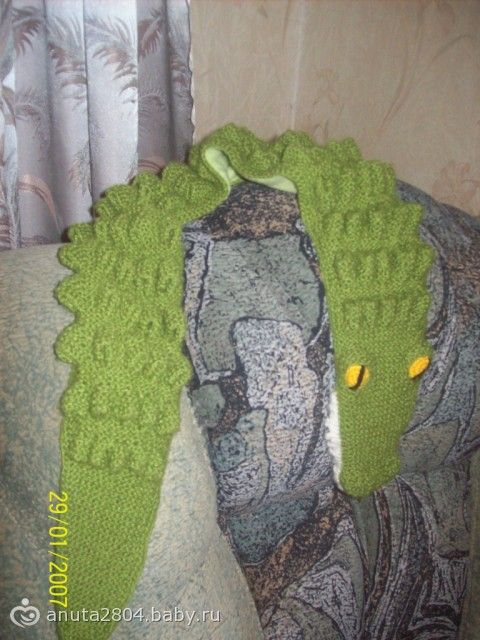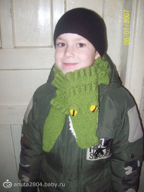 Связала сыну шарф-крокодил, утеплен с внутренней стороны флисом