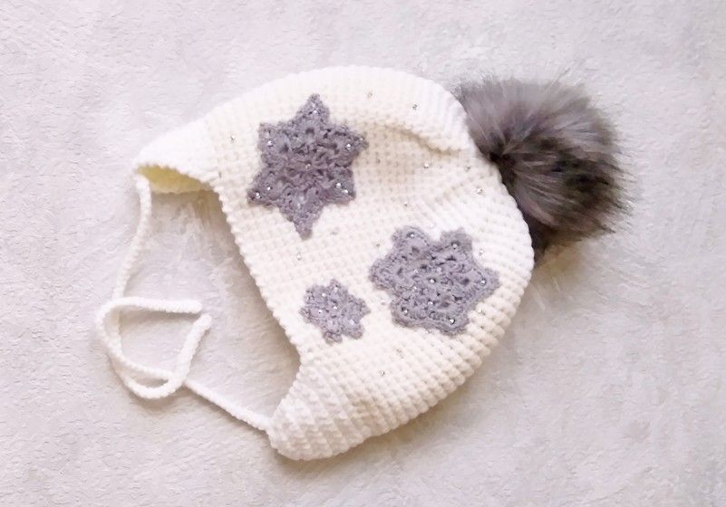 Развела Морковка лапками своими от досады и на её ладошки плавно опустились три снежинки. Смотрит на них Морковка и не налюбуется. Уж какие снежинки красивые, какие яркие. Лежат и не таят. Неужели волшебные снежинки попались нашей зайчишке? И в этот момент представила Морковка шапочку, а на этой шапочке те самые снежинки горят. И так ей понравилась идея.