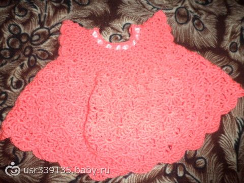 Вот связала платишко. Хотелось бы к нему еще пинетки с шапочкой связать