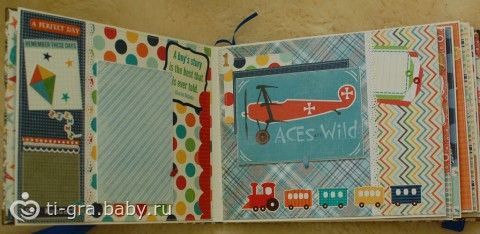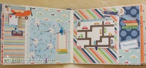 Покажу Вам сегодня свой последний альбомчик!!! Делала его для новорожденного мальчика Илюшки. Альбом получился по-настоящему мальчишеский — с машинками, самолетиками, паровозиками и тп.