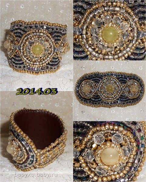 сейчас близится к завершению колье с ониксом, в стиле этого браслета.все работы с изнаночной стороны оформлены натуральной кожей, а вышиты на фетре.