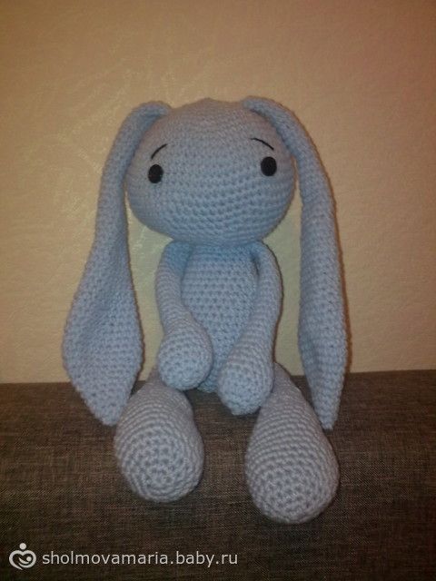 И за два вечера связала зайку, теперь это любимая игрушка дочина. Рост 40 см без ушей)))