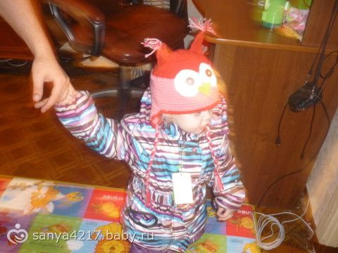 Девочки, принимаю критику. Вот какая шапка получилась, не сильно страшная? Шапка как получилась с ушками нравиться, а вот глаза и нос как-то не очень. Что я не так сделала, может связала их не так или пришила?