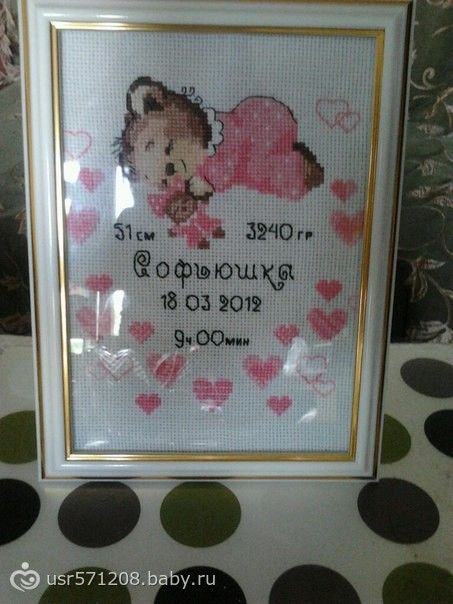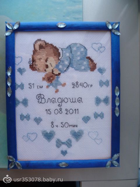 вышивала подруге… 11 марта 2013 22:19 Комментарии Пожалуйста, будьте вежливы и доброжелательны к другим мамам и соблюдайте правила сообщества ПожаловатьсяСкопировать ссылку Александра Алексей15 летНастенька12 лет Богатое классно))))на днях сделала заказ в интернет — магазине детских метриков, такого же розового и голубого мишку))) теперь сижу жду, придет- будем вышивать!!!! ПожаловатьсяСкопировать ссылку Anna Витана13 лет Санкт-Петербург я хотела тоже заказывать набор) но решила ещё поискать в инете))или самой собрать ПожаловатьсяСкопировать ссылку Диана Михаил15 летЭмиль11 летАрина7 лет Губкин я тоже такую хочу))ПожаловатьсяСкопировать ссылку АННА Шелехова Ксюшенька12 лет Екатеринбург набор такой продается с нитками и схемой, в магазинах тканейя конечно долго искала. Сейчас для своей ляли т.оже охото, но только что нтбудь новое, а найти не могу ПожаловатьсяСкопировать ссылку Вікторія Владислав20 летКарина17 летЯрослав12 летЮлианна9 лет Луцк ПожаловатьсяСкопировать ссылку Алёнка Захарова Владислав14 лет Екатеринбург ооо… у нас такая же тока голубая ПожаловатьсяСкопировать ссылку Татьяна Затолокина Мария17 летДмитрий12 лет Изобильный Просто супер. ПожаловатьсяСкопировать ссылку АННА Шелехова Ксюшенька12 лет Екатеринбург спасибо ПожаловатьсяСкопировать ссылку Анна Пеgan Полиночка20 летМаксимка13 лет Екатеринбург красивенько ПожаловатьсяСкопировать ссылку ≈мама♪♫♪Лёка≈ Димасик14 лет Екатеринбург у нас такой же мишка над кроваткой висит, голубой только) ПожаловатьсяСкопировать ссылку Беата Кнопка15 лет Подольск очень красиво! нам крестная что-то подобное вышила, с девочкой, спящей на луне — очень понравилось! ПожаловатьсяСкопировать ссылку Наталия Полина11 лет Овруч Нежненько так и красиво, умничка!! ПожаловатьсяСкопировать ссылку Элен Мурзик12 лет Симферополь Я сначала прочитала-«Вынашивала подруге»-офигела))ПожаловатьсяСкопировать ссылку Юлёна Челябинск я тоже))) Предыдущая статьяДевочки рукодельницы! Это вам!!!Актуальные постыподарок свекрови на 55 летпренатальная формула нужно ли пить