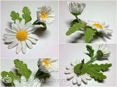 Ромашковый букетик, который можно носить в виде броши связан крючком.
