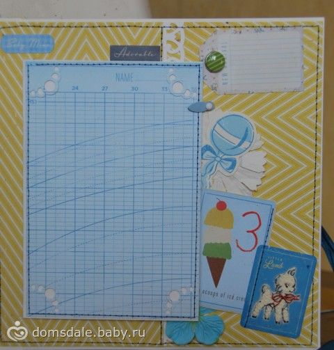 Сам альбом тоже малышок — 21-21 по обложке, 6 листов. Всего в него вмещается 35 фотографий. есть карточка рост вес и зубки.