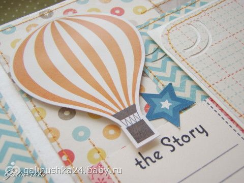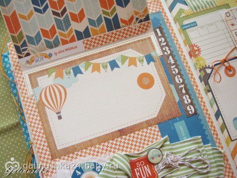 На обложке два вида ткани — лен (с шарами) и хлопок) Альбом в переплете, 7 разворотов, 14 страниц)