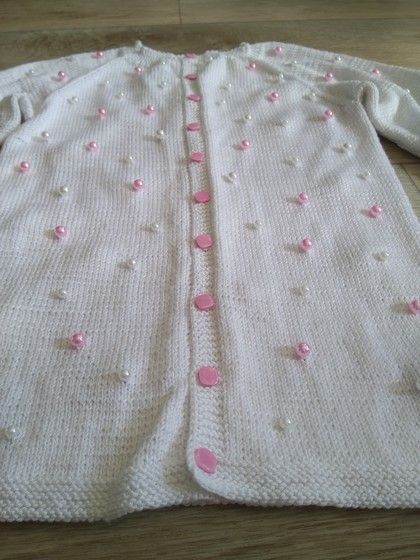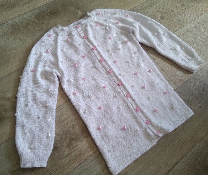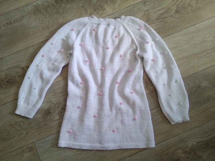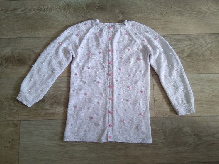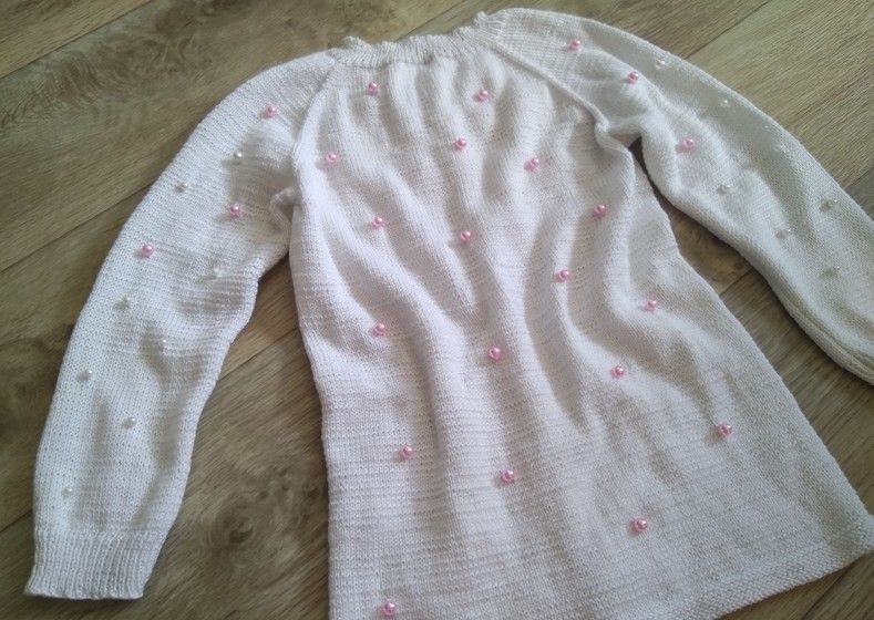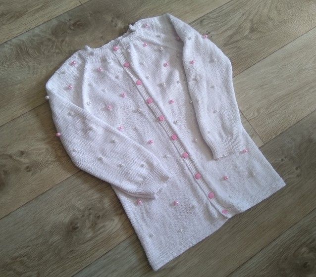 Все бусинки пришиты по отдельности вручную. Кофточка немного становится тяжелее, но не оттягивается.