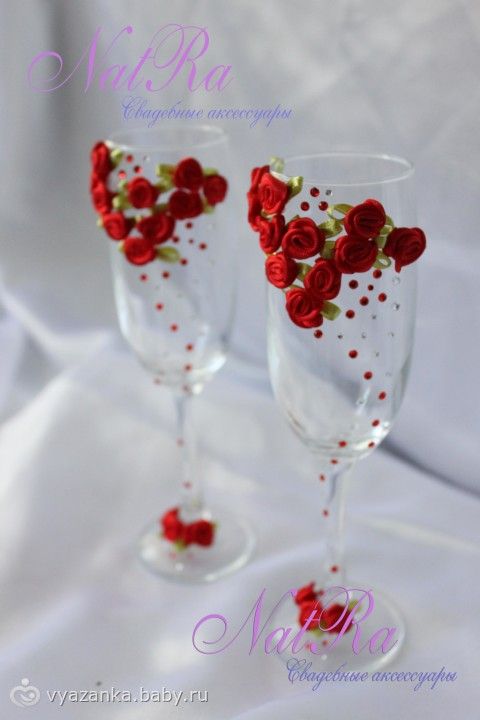 купить ленты какого нравится цвета и ножку обмотать. а на стыке ножки и бокала сделать цветы в цвет. можно даже настоящие цветы попробовать.