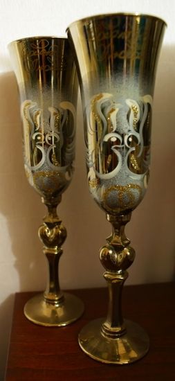 в августе у моей подруги свадьба и вот ее бабуля подарила им свадебные бокалы, сказав при этом что если они ими не воспользуется обида будет смертельная! бокалы вот такого плана