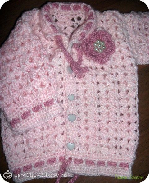 Вот такой комплектик у меня вышел! ниточки шерсть, размер примерно на полгода.шапочка 42-44, кофточка: длина по спинке 31, пог 27.Продаю